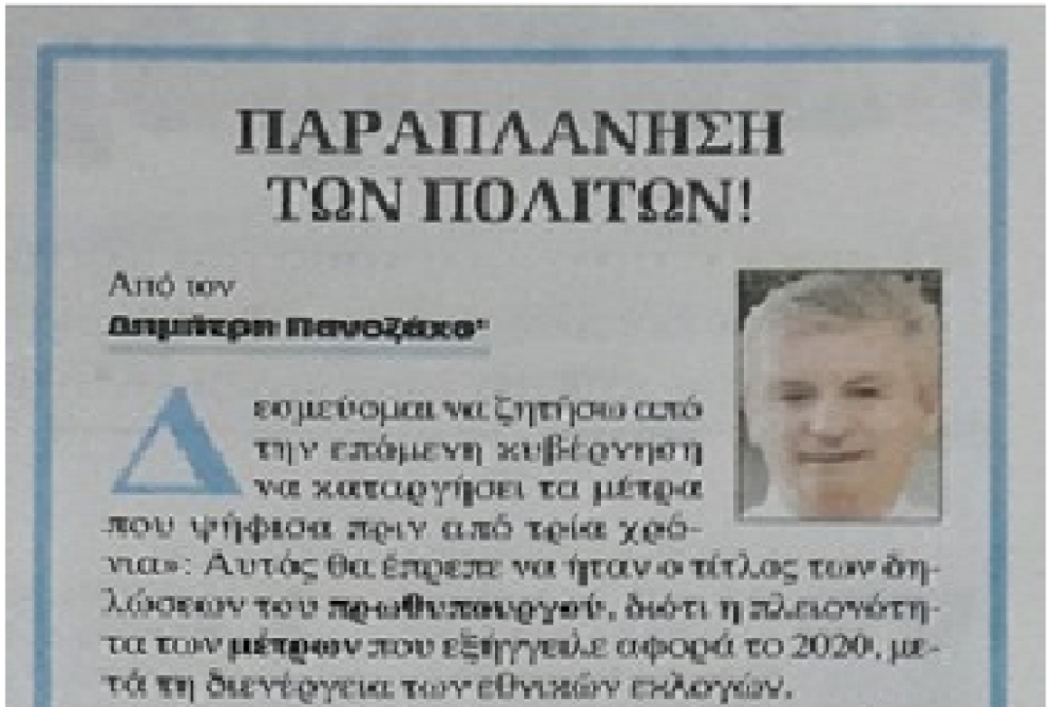 Η τακτική του «Δεσμεύομαι να καταργήσω αυτά που ψήφισα πριν από τρία χρόνια, γ’ αυτό ψηφίστε με», δεν αποτελεί λύση για τη χώρα . Αποτελεί προσπάθεια προεκλογικής παραπλάνησης των πολιτών.